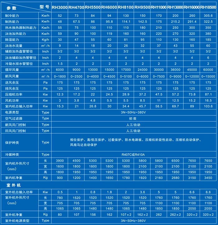 三集一體室內泳池恒溫除濕熱泵產品特點: