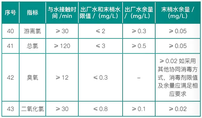 根據《游泳池給水排水工程技術規程》CJJ122-2017的要求,游泳池的初次充水、換水和運行過程中的補充水,應采用符合現行國家標準《生活飲用水衛生標準》GB5749的城鎮給水管網的供水。以下是最新《生活飲用水衛生標準》GB5749-2022生活飲用水消毒劑常用指標及要求: