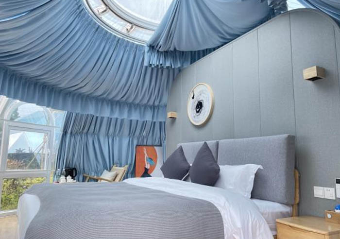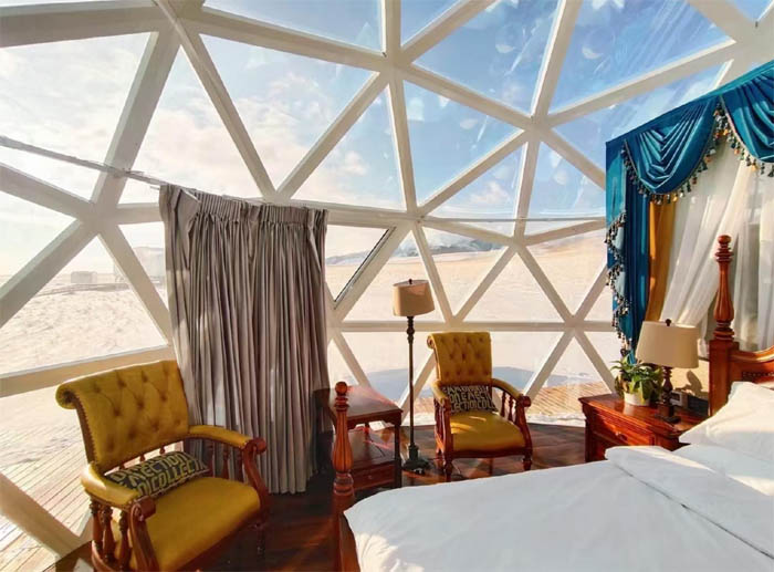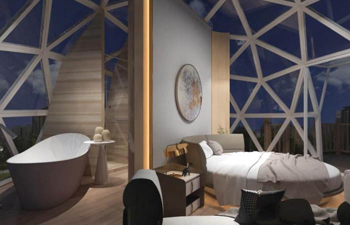 360°的立體極致視野體驗(yàn),七星級(jí)野奢享受,高品質(zhì)材料、智能天幕、一體化精奢配套,造型新穎有特色,文旅行業(yè)網(wǎng)紅標(biāo)配建筑。